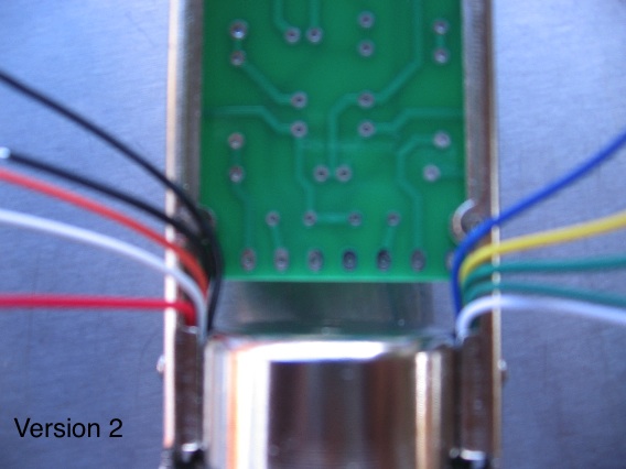 The version 1 microphone has eight leads from the bottom assembly, and the version 2 microphone has ten leads.