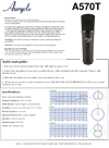 The A570T large diaphragm professional studio condenser microphone is designed to offer versatility for both live and studio recording applications. This microphone features a 1" Gold